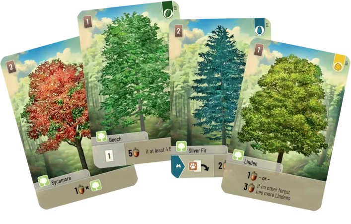In Forest Shuffle, players compete to gather the most valuable trees, then attract species to these trees, thus creating an ecologically balanced habitat for flora and fauna.