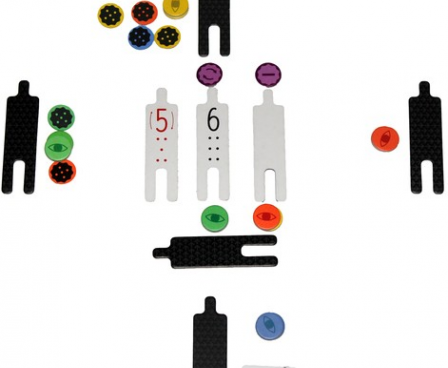 The game ends when any player has no colored markers available to place or any player has collected eight or more markers, whatever their color. The player holding the fewest markers wins the game.
