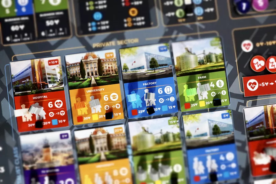 Hegemony is an asymmetric politico-economic card-driven board game for 2-4 players that puts you in the role of one of the socio-economic groups in a fictional state: The Working Class, the Middle Class, the Capitalist Class and the State itself.