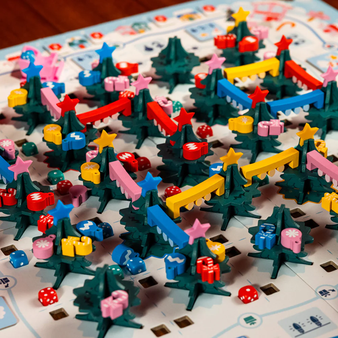 Race to decorate Jingle Bell Square with trees, ornaments, candy canes, and twinkling string lights while delivering dice presents for extra cheer! Outshine your fellow elves, spark the most Christmas magic, and the coveted Key to the City is yours!