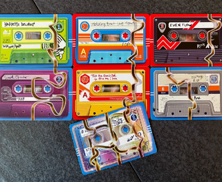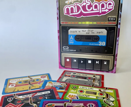 “I Made You a Mixtape” is a I-split-you-choose card game where you will be competing with the other players to make the best compilation possible out of an album collection. Your tape will be judged on how well it’s themed, how the tracks flow with each other, and the balance of lengths between side A and side B.