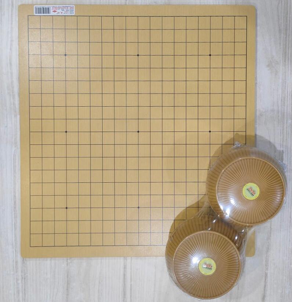 Satu set komplit Igo/ Baduk/ Weiqi bentuk Elips, bahan biji komposit carbon. Material papan MDF dengan coating,