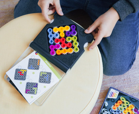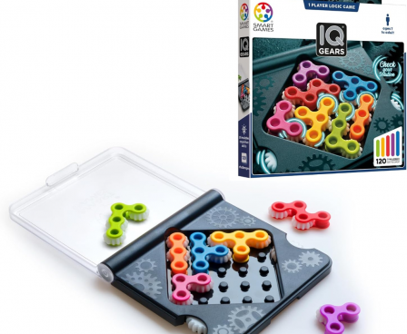 - Travel-Friendly Brain Games: Fit the pieces on the board - then twist the gears to check your solution. Close the lid and take it with you on the go!
