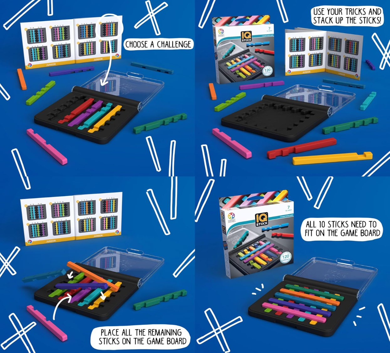 - Travel-Friendly Educational Toys: IQ Stixx features 120 challenges. Thanks to its compact size and portable travel case, you can put this puzzle at the top of your family's travel games list.