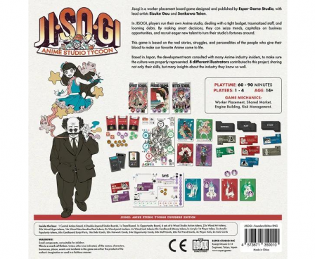 Jisogi is a brand new worker-placement board game designed and published by Esper Game Studio, with art by Eisuke Gou and Senkawa Teien. The theme is Anime, more specifically the hard-working folks and the crushing business behind it.