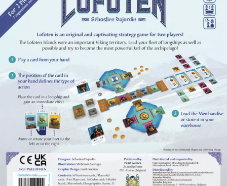 In Lofoten, you must load merchandise from the market into your longships, and bring them back to your clan. For each type of merchandise, a particular scoring will grant you an advantage over the opposing Jarl. No matter what the situation is, your goal is to earn more PP (Power Points) than the opposing Jarl in the final scoring, to become the most powerful Jarl in the archipelago!