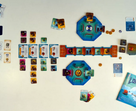 Lofoten, is a game for two players with innovative card hand management and a rotating board.