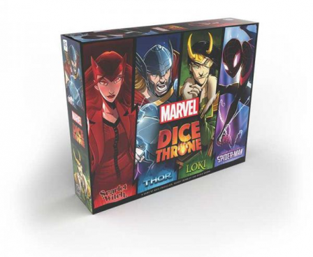 Marvel Dice Throne is a fast-playing, dice-rolling combat game that lets players battle as their favorite Marvel heroes in one-on-one duels, team battles, and free-for-alls! Based on the smash success Dice Throne, this Marvel Dice Throne 4 Hero Box puts players in the roles of Scarlet Witch, Thor, Loki, and Spider-Man, each with their own set of dice, player board, and unique deck of cards.