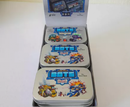 Micro Bots is a strategic duelling game where you must outmanoeuvre, and outwit, your opponent. Card effects (attacking, moving, etc.) become more powerful based on the number of cards you have previously placed. So the order you play your cards determines your strategy - do you hold back your big attacks for maximum firepower, or deplete your opponent’s defences with a first strike?