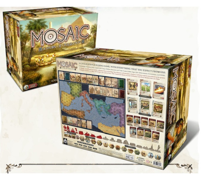 Mosaic: A Story of Civilization is a Civilization-Building game from Glenn Drover, designer of, among others, Age of Empires III: The Age of Discovery, Railways of the World, Sid Meier's Civilization: The Boardgame, and Raccoon Tycoon.