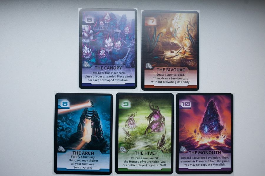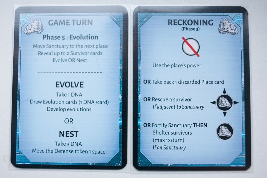 Not Alone: Sanctuary, an expansion for Not Alone, adds a few new elements to the base game, such as a Sanctuary location that gets more powerful the more that you visit it, but which also requires more effort to reach. The creature also gains the ability to mutate.