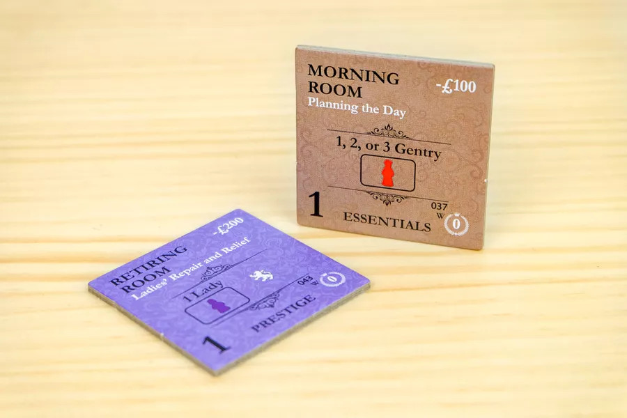 The Wessex Expansion adds a fifth family board to the mix that gives the advantage of a larger starting country estate. A player selecting the Family Wessex player board will have their choice between the Breakfast Room and Tennis Court—second level improvements—in his or her manor house at the beginning of the game. The expansion also adds five additional Starter Guests, five additional Casual Guests, five additional Prestige Guests, and six new Solitaire opponents.