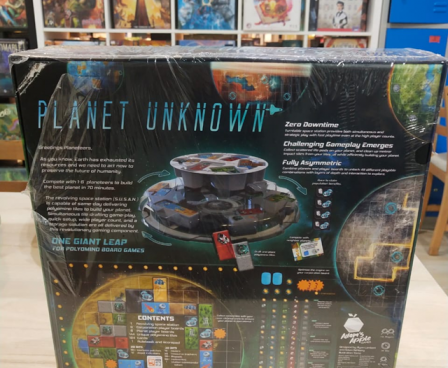 Planet Unknown innovates on the popular polyomino trend by allowing simultaneous, yet strategic turn-based play via the Lazy S.U.S.A.N. space station in the center of the table.