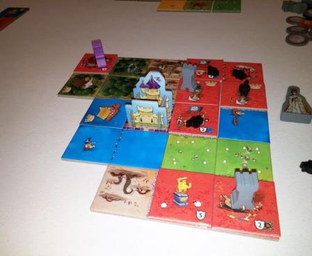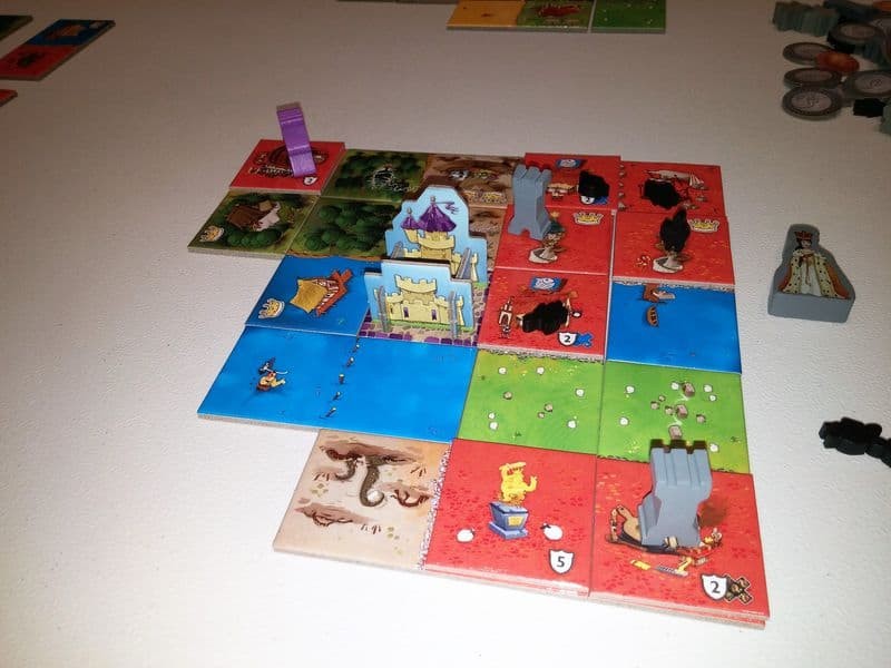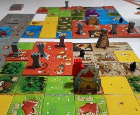 Build up the most prestigious kingdom by claiming wheat fields, forests, lakes, grazing grounds, marshes, and mountains. Your knights will bring you riches in the form of coins — and if you make sure to expand the towns on your lands, you will make new buildings appear, giving you opportunities for new strategies. You may win the Queen's favors ... but always be aware of the dragon!