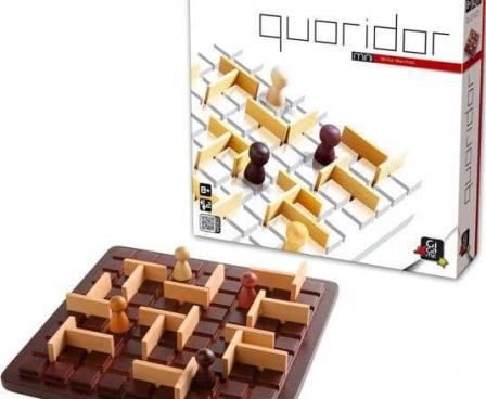 The abstract strategy game Quoridor is surprisingly deep for its simple rules. The object of the game is to advance your pawn to the opposite edge of the board. On your turn you may either move your pawn or place a wall. You may hinder your opponent with wall placement, but not completely block him off. Meanwhile, he is trying to do the same to you. The first pawn to reach the opposite side wins.