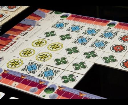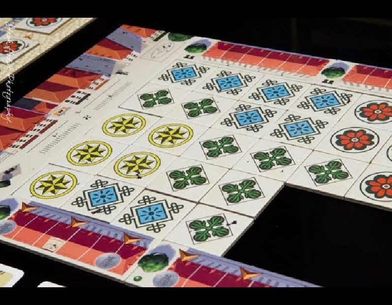 Then, players must build the leftmost calçada tile of their player boards. Players can never voluntarily change the order of the tiles on their board. At any moment players can, however, spend 1 coin to swap 2 pieces on their board that are orthogonally adjacent. The tile must be built in the square orthogonally adjacent to at least 2 elements: 1 tile and 1 wall, or 2 tiles. And must be built on the leftmost available space of the line it is being built. If the players manage to build orthogonally adjacent to a similar tile, they can as bonus build the next leftmost tile, and so on, until they decide to stop or until they can't build more. Players collect then 1 coin for each coin depicted on the spaces that were left free on their player boards after tiles were built.