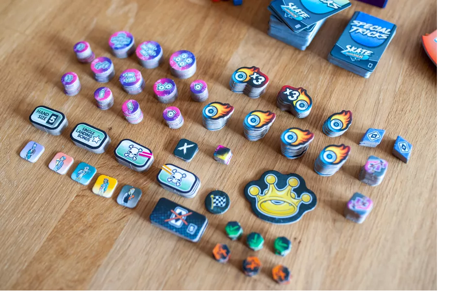 4. ROUND END: Each player resets their board and draws up to their hand size, then the "Pro Skater" first player marker passes to the left.