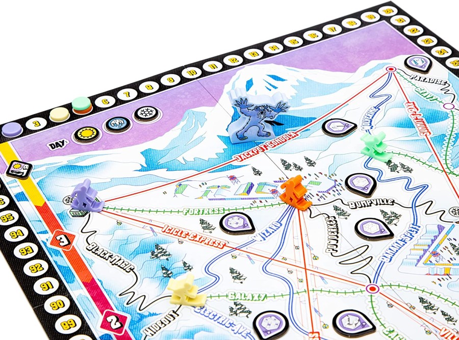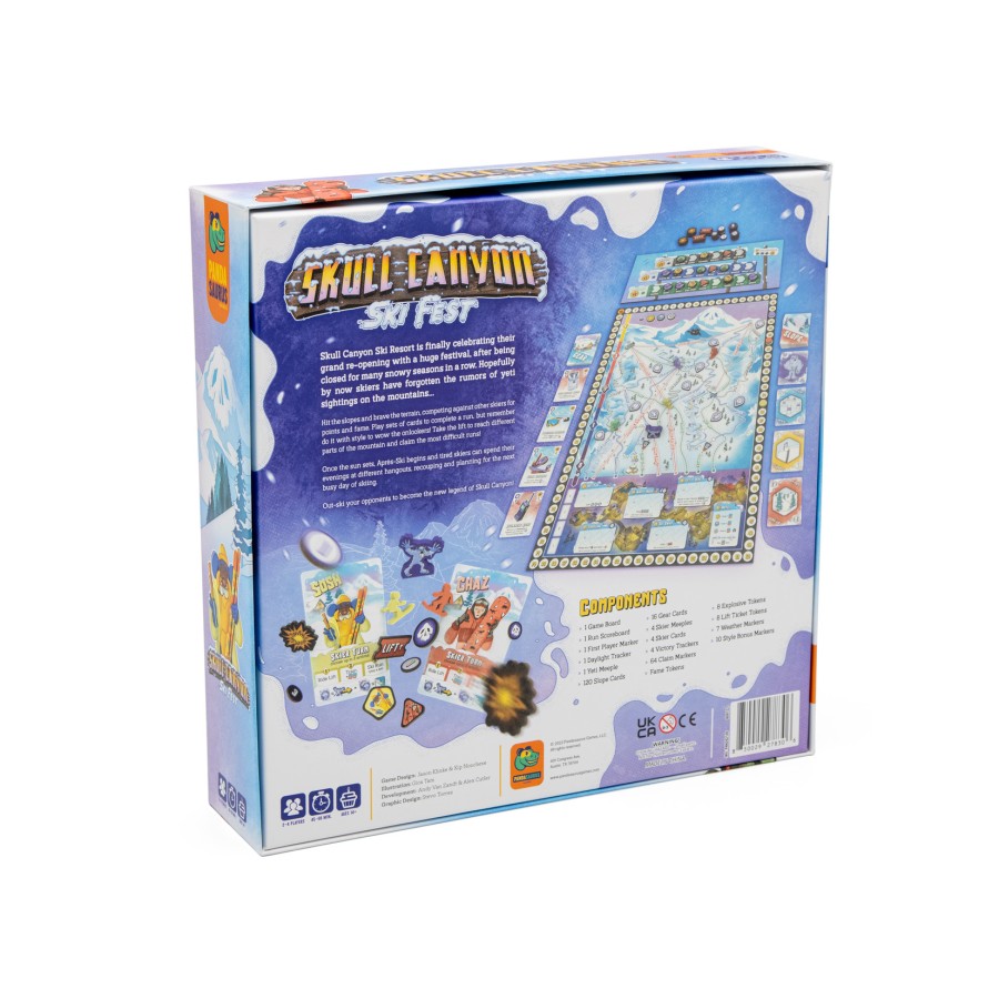 At the end of each day of skiing, you take a break at the Ski Village, where you can take bonus actions and acquire gear to prepare for the next day of skiing. At the end of the third day, players score for the number of easy, advanced, and expert runs they control, then whoever has the most victory points wins!