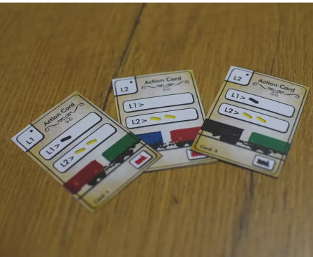 During their turn, players will build their tracks by placing 2 trains on the modular board. When building tracks, players must pay the gold costs for the different terrain that the track passes through. Once a track connects an industry that produces a good with a city that demands that certain good, the player may send a train to complete the delivery and earn gold depending on the track length.