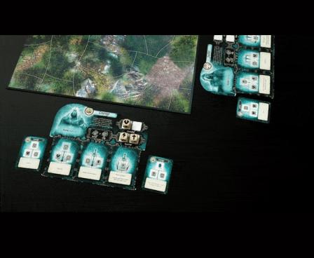 Using custom card decks and dice, each Virtue can control Solomon Kane or his allies, moving them around the board, fighting enemies, exploring locations, and interrogating suspects for information. If the odds get too stacked against Solomon Kane, the Virtues can even manifest directly to intervene on the board.