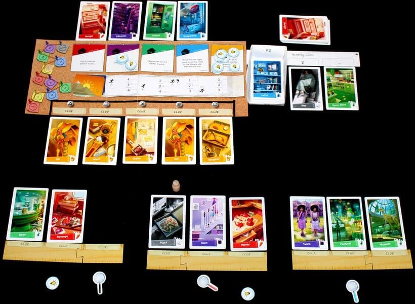 In the standard game, each player has double-sided clue cards in front of them. On your turn, you use actions to flip, draw, and trade clue cards, gain ideas, and confirm clue cards as evidence. Confirm 5 clues of the same type to solve part of the case. As you discover more and more of the solution, a story starts to emerge: your Neighbor stole something from the ice cream shop, but what? And why? To crack the case, you must find the solution to all 5 parts before the suspect escapes or you run out of clues.