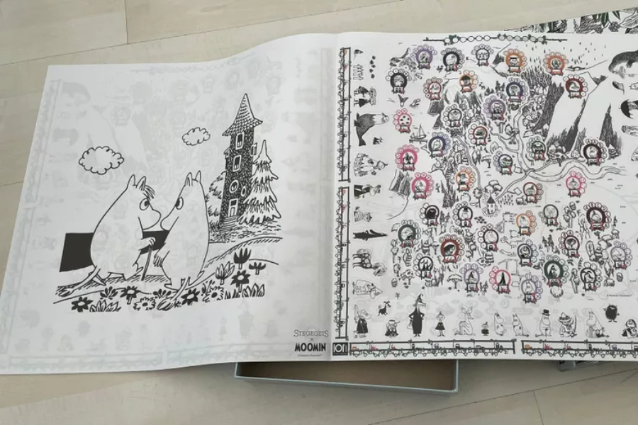 Moomin is a globally famous and loved story world. The plot in these stories often includes excursions and trips in their valley, and this idea was used as inspiration for the story behind the mechanisms in StegegetS Moomin, which centers around a map of the Moominvalley, as depicted in the stories from the 1950s and 1960s.