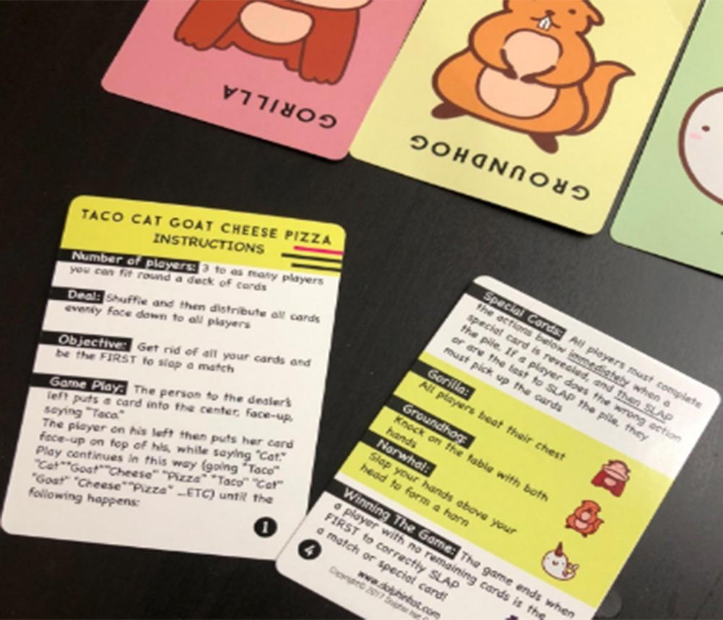 For extra fun, special action cards – the gorilla, narwhal, and groundhog — force players to make certain gestures before racing to slap the deck!