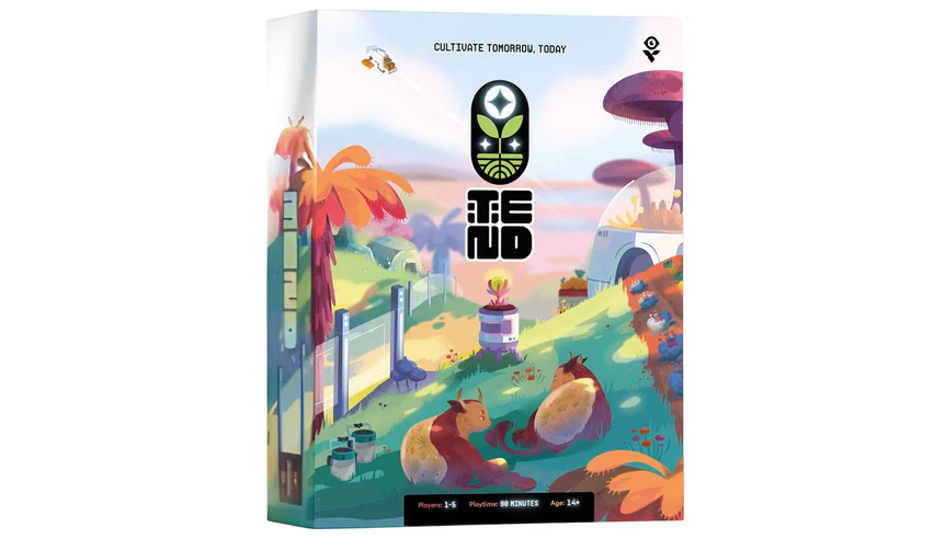 Tend is a flip and write game where players are each building up their own farm and collecting the greatest selection of goods to send back to Zenith HQ for study. All players will be using the same deck of action cards each round to simultaneously take actions on their own sheets.