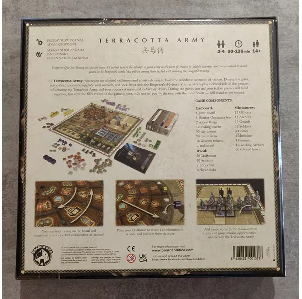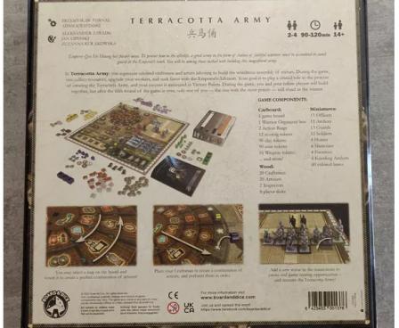 In Terracotta Army, you represent talented craftsmen and artists laboring to build the wondrous assembly of statues. During the game, you collect resources, upgrade your workers, and seek favor with the Emperor's advisors. Your goal is to play a crucial role in the process of creating the terracotta army, and your success is measured in victory points (VPs). During the game, you and your fellow players build the army together, but after the fifth round of the game is over, only one of you — the one with the most points — will stand as the winner.
