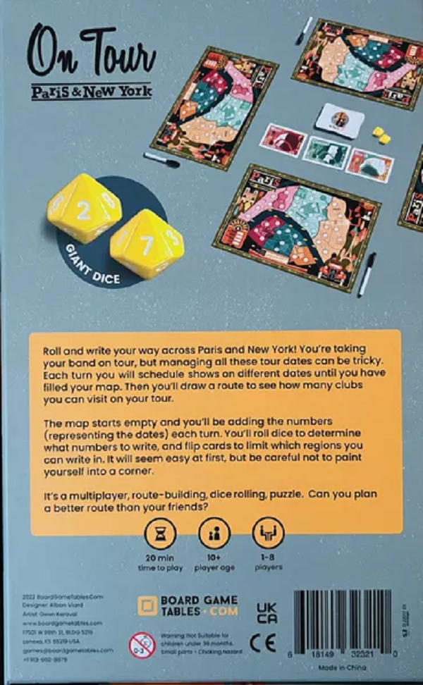 On Tour Paris & New York is a brand-new standalone game based on the original On Tour design and featuring some new opportunities for travel!