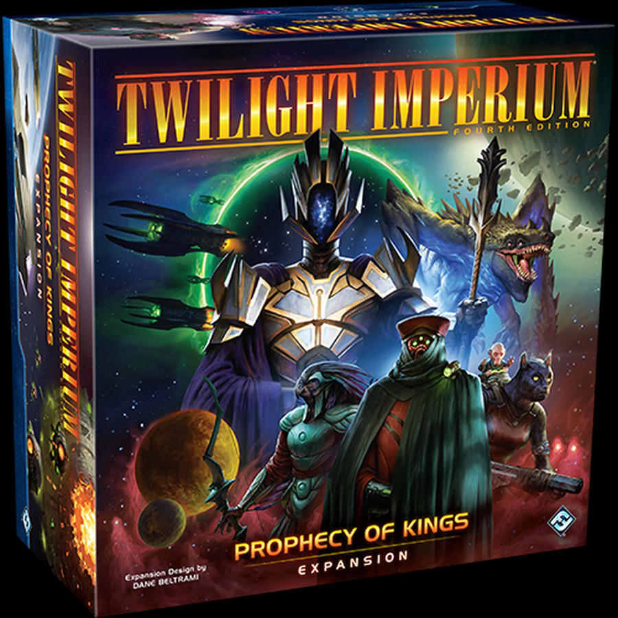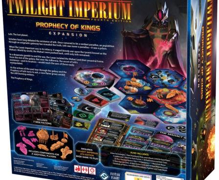 The Prophecy of Kings expansion is packed with new content for Twilight Imperium (Fourth Edition). The galaxy has grown far larger as seven never-before-seen factions enter the game, each boasting its own unique strengths and weaknesses, from the gene-altering powers of the Mahact to the watchful guard of the Argent Flight, to the mysterious and ancient Empyrean. And new factions aren't the only way the galaxy grows bigger! Forty new system and hyperlane tiles add new planets and obstacles to the map, and with two new colors of player components included in the box, you can play Twilight Imperium with up to eight players.