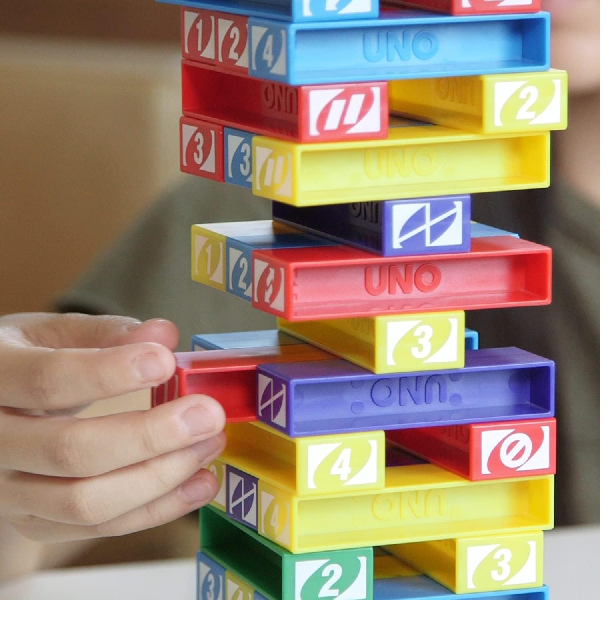 It's the best of UNO matching by color and number, mixed with an exciting stacking game.