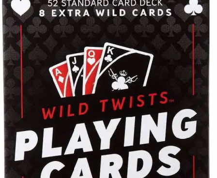 Wild Twists Playing Cards by UNO brand is a standard deck of 52 playing cards with the addition of eight special Wild Cards for optional crazy twists! Play all the classic card games, such as Poker, Go Fish, Gin Rummy and more, but take 'em to the next level with these special cards that include different Wild Card options. For example, the "Red Wild Card" can represent any Heart or Diamond card a player may need, the "Black Wild Card" can stand in for any Club or Spade and there are suit-specific Wild Cards for every individual suit. Also included are instructions on how to play "Wild Race," a fast-paced card game that can only be played with this deck! Wild Twists makes a great gift for card game lovers ages 7 years and older. Colors and decorations may vary.