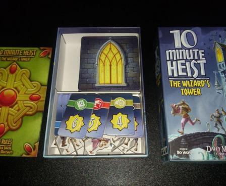 In 10 Minute Heist: The Wizard's Tower, players take turns moving their pawns from room to room stealing items. Players compete for most paintings, artifacts, jewels, and fossils. Players also compete for the most items valued at 3, 4, and 5. The first player to exit receives bonus points, so it's a race to the finish while simultaneously trying to get sets of items to maximize points. Be careful not to accumulate too many cursed items because they're worth negative points at the end of the game!