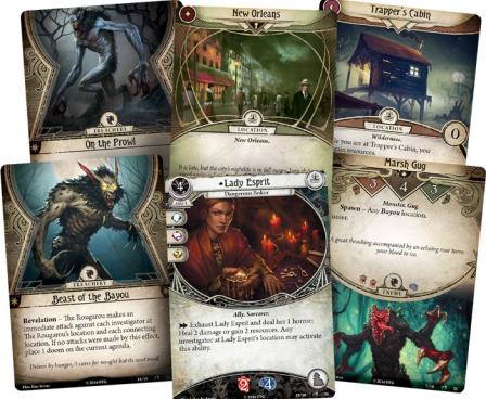 Designed to be played as a standalone adventure, or added to your campaign as a "side-story," Curse of the Rougarou sends you along a bone-chilling hunt through New Orleans and the bayous of southern Louisiana. Its 62 cards come with all the rules, locations, act, agenda, and encounter cards that you'll need to immerse yourself in a mystery full of malign spirits, murderous beasts, and other hazards—some natural and some decidedly unnatural.