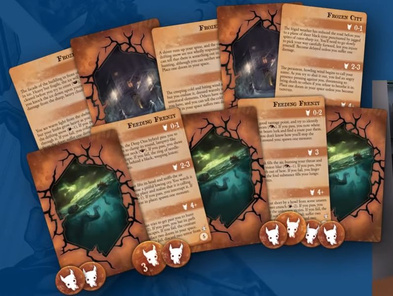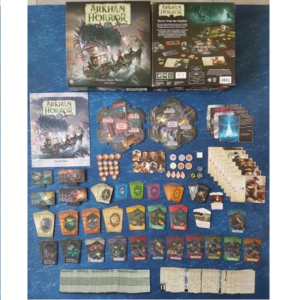 Under Dark Waves is a new large box expansion for Arkham Horror, taking your investigations beyond the town of Arkham to the other ill-fated towns of Massachusetts. Two new double-sided tiles bring Kingsport and Innsmouth to vibrant life, while eight more investigators arrive to join your party, ranging from a drifter like “Ashcan” Pete to a letter carrier such as Stella Clark. These investigators will have their work cut out for them with four entirely new scenarios pitting them against the horrors that lurk beneath the ocean waves. With over 150 encounter and event cards, alongside new assets, monsters, conditions, and the terror mechanic, Under Dark Waves boasts a vast undersea treasure trove, pulling you into some of the Cthulhu Mythos’s most compelling tales.
