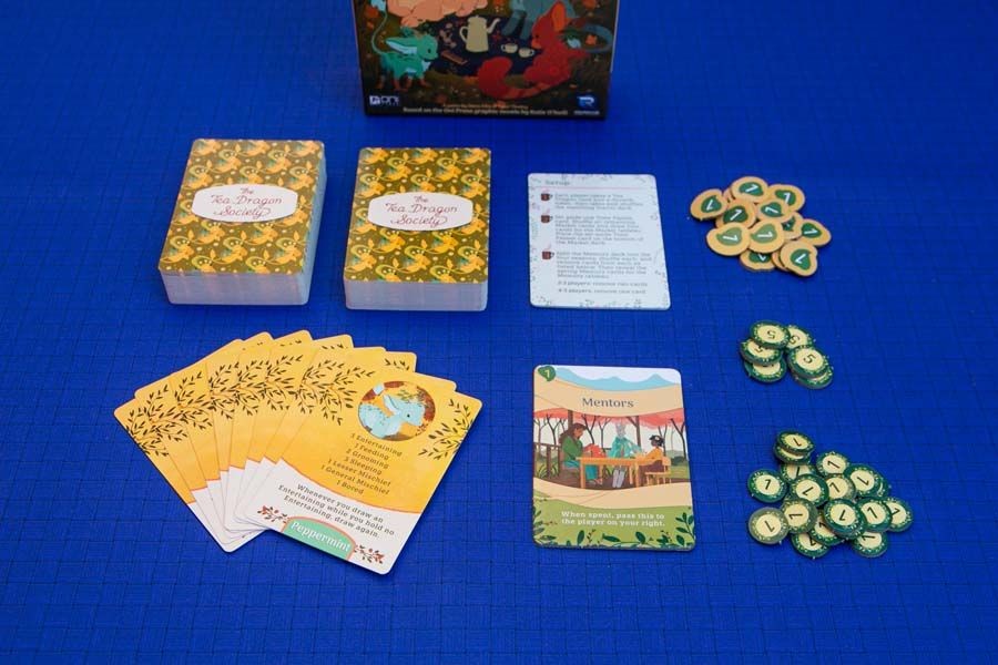 Each player's deck represents their own Tea Dragon. From turn to turn, players will choose to draw a card, triggering effects and strengthening their position, or buy a card, improving their deck or scoring points. At the end of the game, the player with the most points wins!