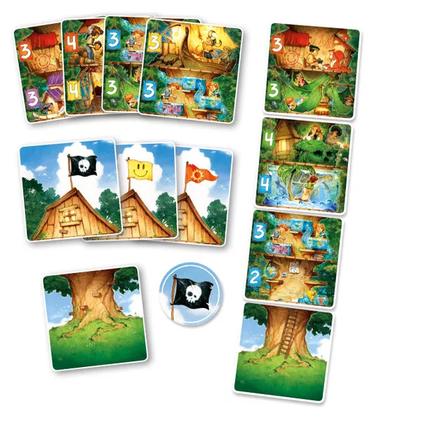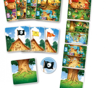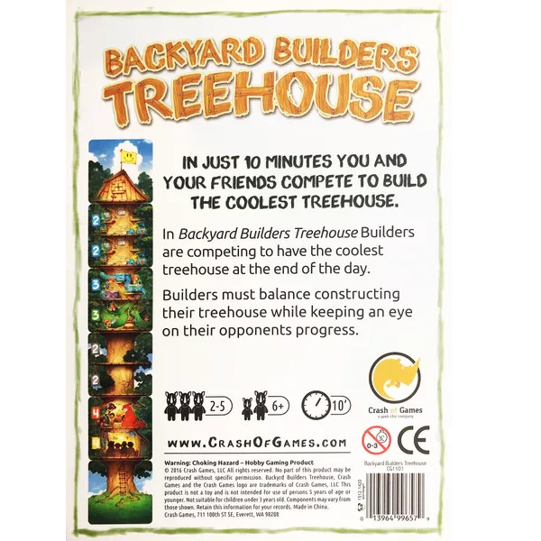 Backyard Builders Treehouse — released in the France as Way Up High — is a reimplementation of Yardmaster Express with players now trying to climb vertically to build a treehouse instead of adding cars to their train engine.