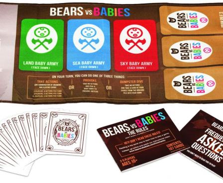 Bears vs Babies is a card game in which you build handsome, incredible monsters who go to war with horrible, awful babies.