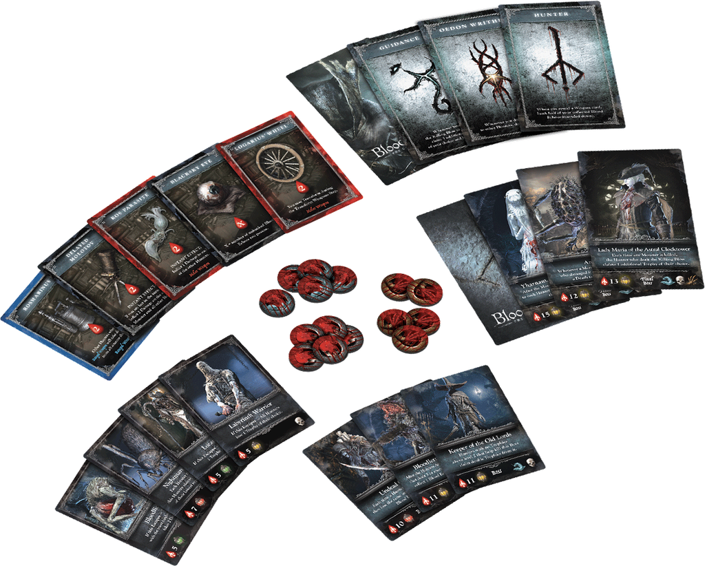 Return to the Chalice Dungeons in Bloodborne: The Card Game – The Hunter's Nightmare. In this expansion, players must survive against new, deadly bosses and monsters; however, new weapons will help hunters along the way. The Hunter's Nightmare also introduces two new gameplay features: Death Tokens and Runes, both of which will have lasting effects throughout your games.