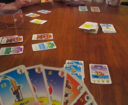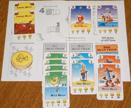 As card games go, this one is quite revolutionary. Perhaps its oddest feature is that you cannot rearrange your hand, as you need to play the cards in the order that you draw them. The cards are colorful depictions of beans in various descriptive poses, and the object is to make coins by planting fields (sets) of these beans and then harvesting them. To help players match their cards up, the game features extensive trading and deal making.