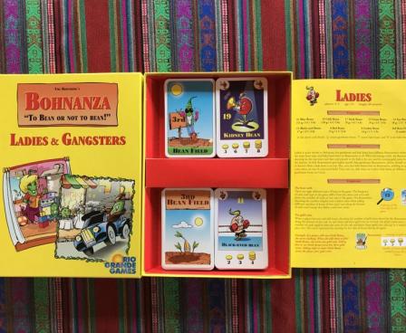 Bohnanza: Ladies & Gangsters is an English language compilation of two stand-alone Bohnanza games previously available only in German: Ladybohn: Manche mögen's heiss! and Al Cabohne.