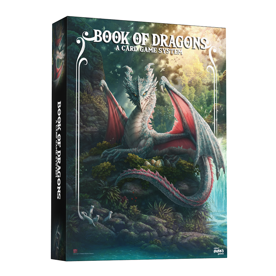 The deck features four copies of ten unique dragons, with no text or iconography on any of the cards. Games are played only by use of the artwork on the cards, making all games completely language independent. Book of Dragons will launch with 18 designer games by 16 different designers as well as some re-worked public domain games.