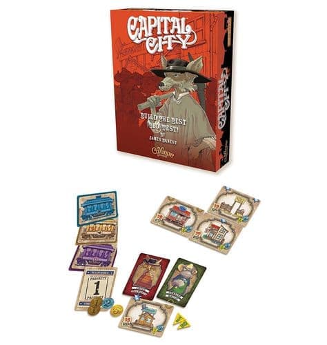 Howdy, partners, and welcome to Capital City! In this fast-playing card game, you've got one year to help build the most famous town in all the West! Each season, the train brings in city slickers and kinfolk from the east to help you run your new businesses on Main Street. Hire your workers carefully, keeping in mind that members of the same family help each other reach success faster! Dollars are useful, but victory points (VPs) are like pure gold! At the end of the year, the player with the most VPs wins the game and becomes the new Mayor of Capital City! Bring home a little piece of the wild west today!