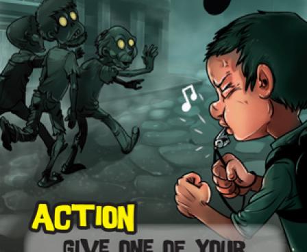 In the survival action card game Card of the Dead, players are trapped in a town full of zombies; engulfed in the scourge of terror, they must try to survive the zombie horde. Some will frantically seek to flee the city, others will seek to barricade themselves in buildings against the terrible siege. By not getting surrounded, and through the use of both luck and brains(!), you will be able to survive the night.