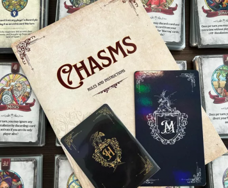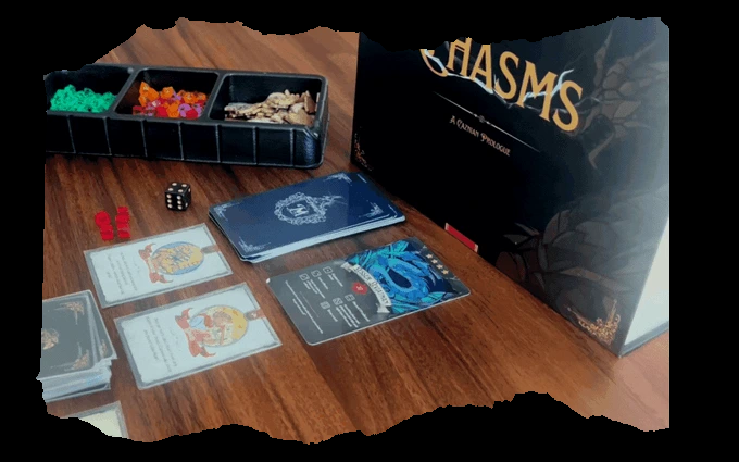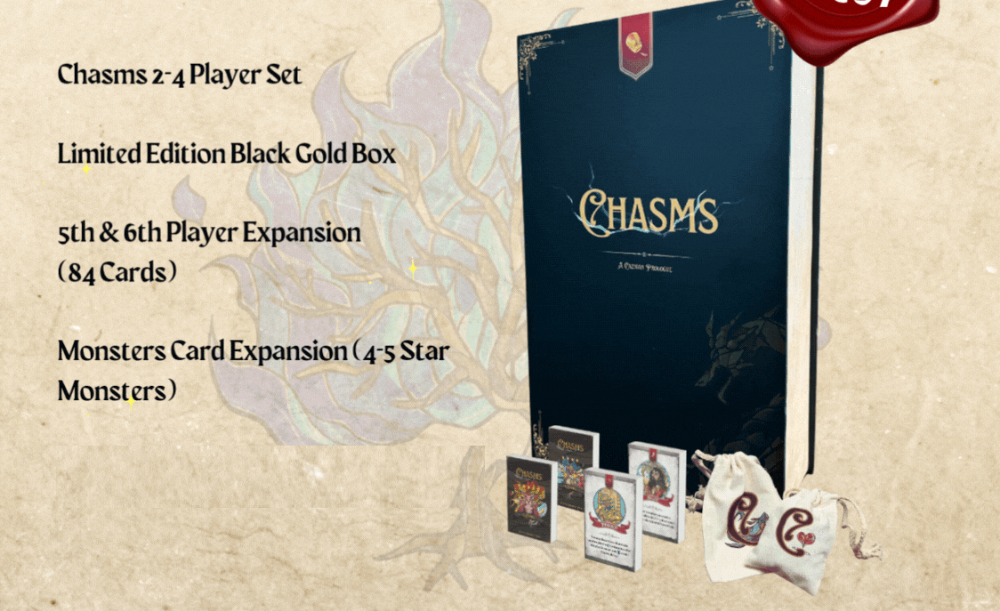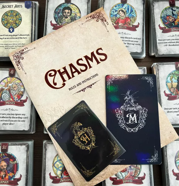Chasms is a strategic card game (Up to 6 players) where you collaborate and compete to take down ancient Monsters whilst vying for the ultimate title: Invoker of Caznia!