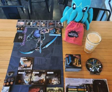 Crimes in History: H. H. Holmes' Murder Castle is a competitive, medium to low weight, board game from Blueprint Gaming Concepts aimed at becoming one of the most versatile games on the market. The action drafting mechanic was inspired from Puerto Rico and San Juan to achieve player engagement with little down time in between turns. The event cards were inspired from Kings of Tokyo and include high amounts of player-to-player interaction. It's designed by Seth Cooper & Brandt Hoffman and features hand-drawn macabre illustrations by Holly Carden.