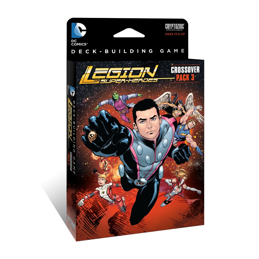 A legion of young guns from the DC Universe are ready for their time in the spotlight! In DC Comics Deck-Building Game: Crossover Pack 3 – Legion of Super-Heroes, play as a founding member of the Legion of Super-Heroes: Lightining Lad, Saturn Girl, Cosmic Boy, and more! Take on Super-Villains like Time Trapper, Emerald Empress, Persuader, and many others. Find interesting new Heroes, Villains, Equipment, Super Powers, and Locations in this set as well.