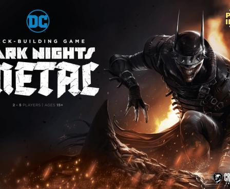 DC Comics Deck-Building Game: Dark Nights: Metal, which is based on the Dark Nights: Metal comic book series, lets 2-5 players take on The Batman Who Laughs and other evil versions of the Caped Crusader from the Dark Multiverse. Players must rescue and recruit fellow members of the Justice League, take advantage of instant rewards for defeating Super-Villains, and utilize foil cards with the new sub-type "Metal" as they race to save the Multiverse.