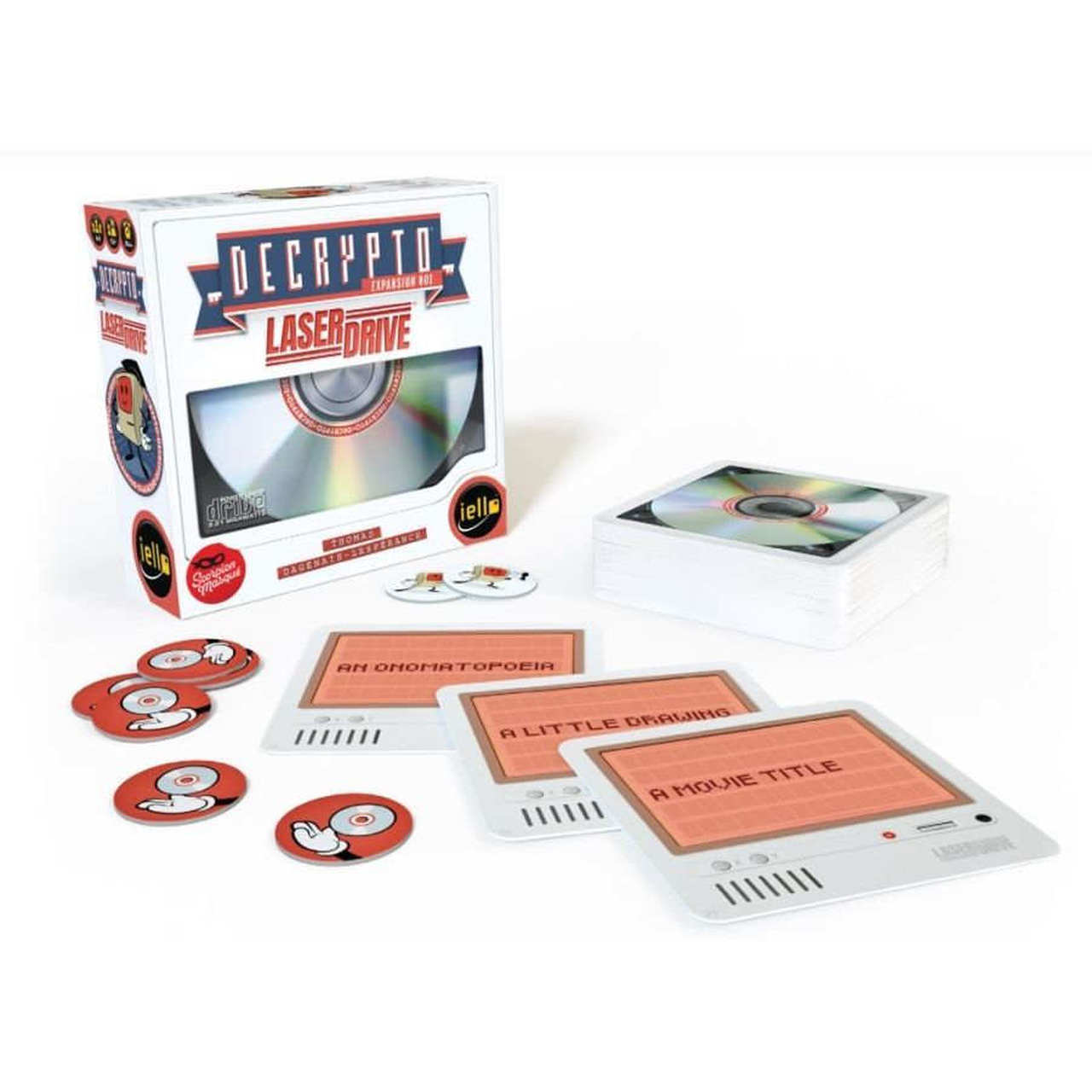 When you add Decrypto: Expansion #01 – Laserdrive to the base game, each round you draw a category card — movie titles, tourist attractions, words that begin with an A, etc. — and at least one of the clues that you give to your teammates must match this category. If all three of your clues match the category, then you receive a red laser token.